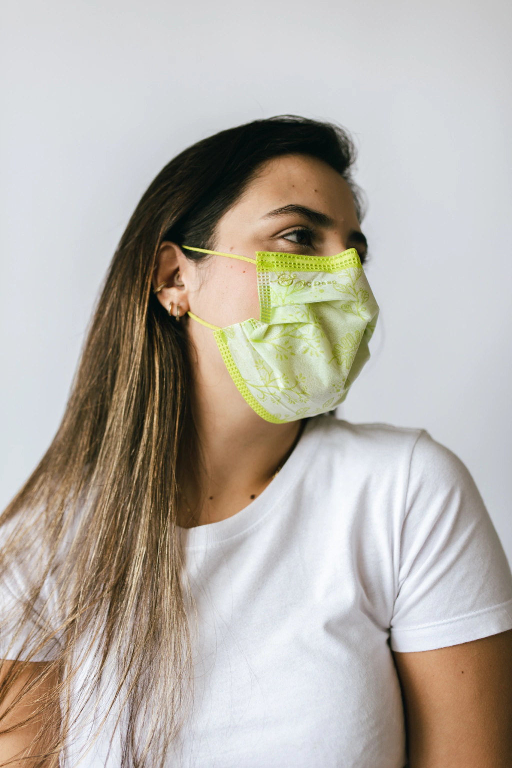 - Pistache: Cor Principal Máscara: Branca - Estampa: Verde Escuro e Verde Claro - Secundária Máscara: Pistache - Elástico: Pistache;